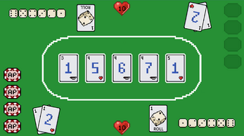 Alter Roll is a 2-player, turn-based game. Each player picks a team (red or blue poker chips) and takes turns using cards, rolling dice, and managing action points to defeat the opponent.